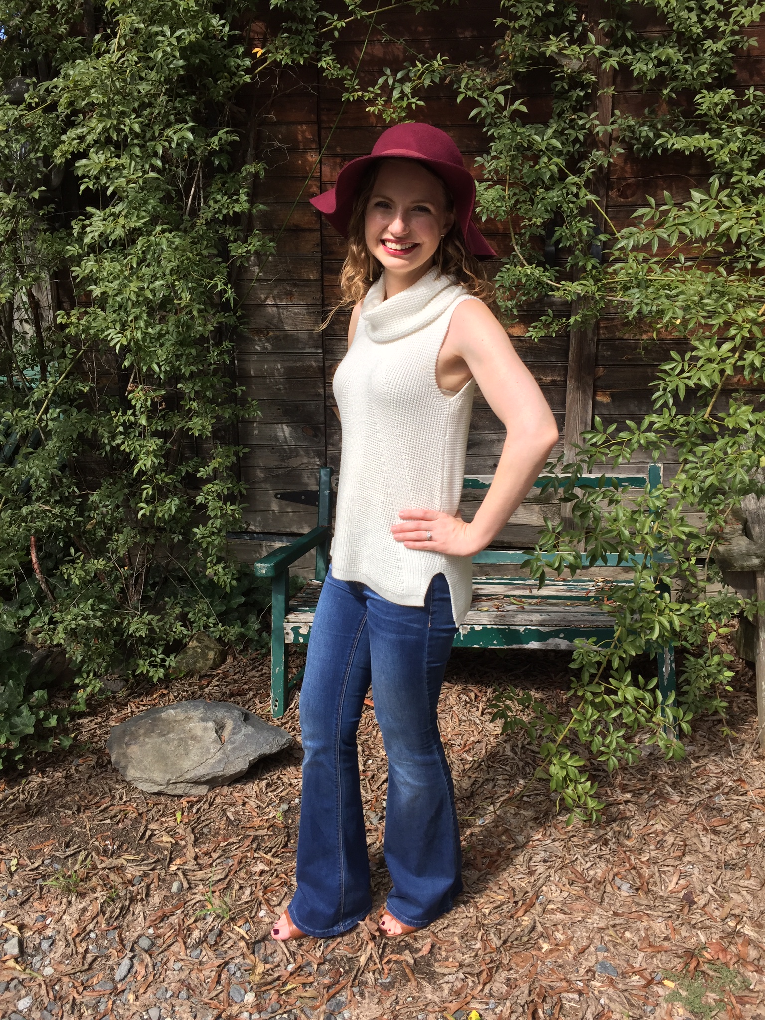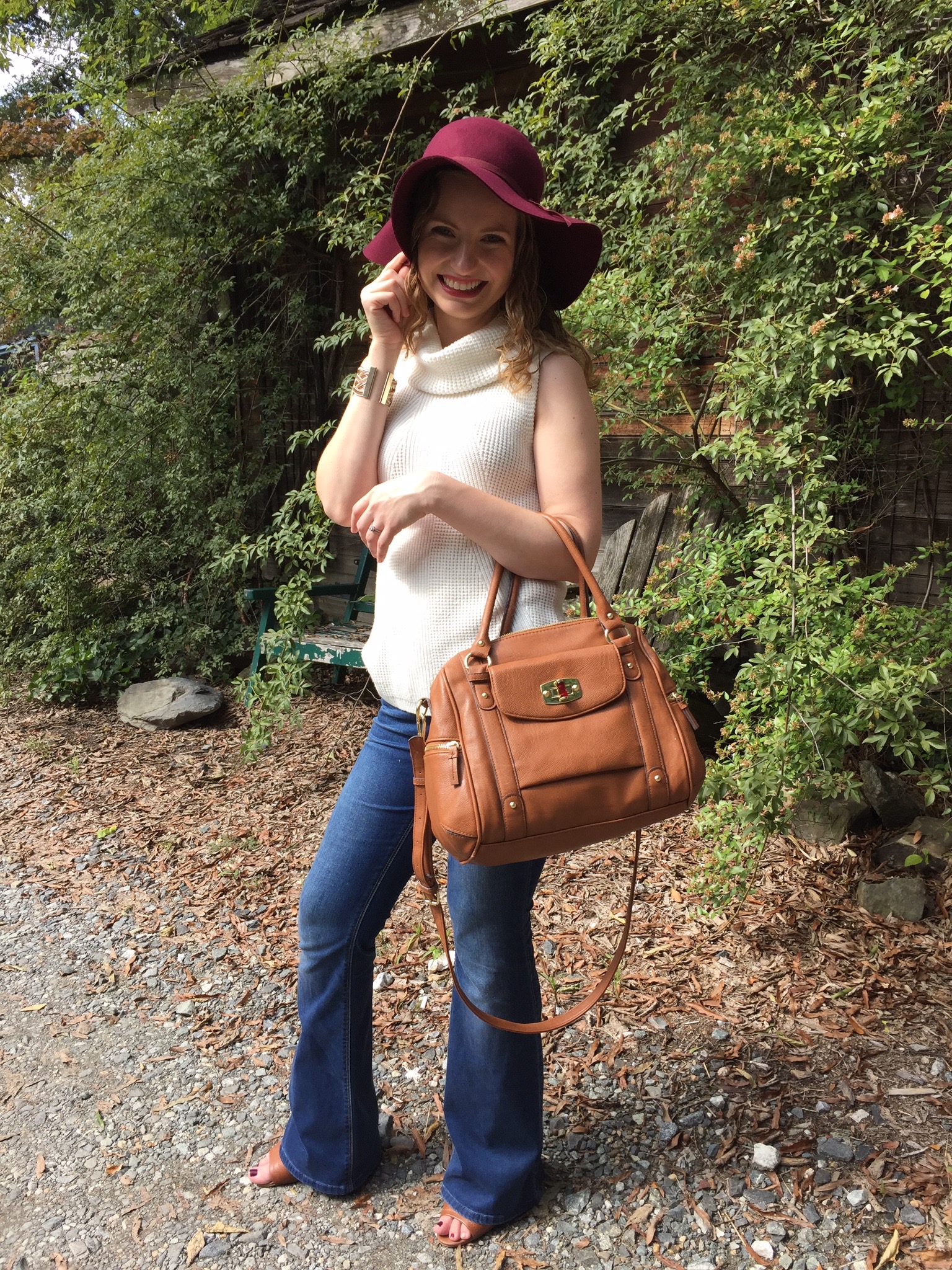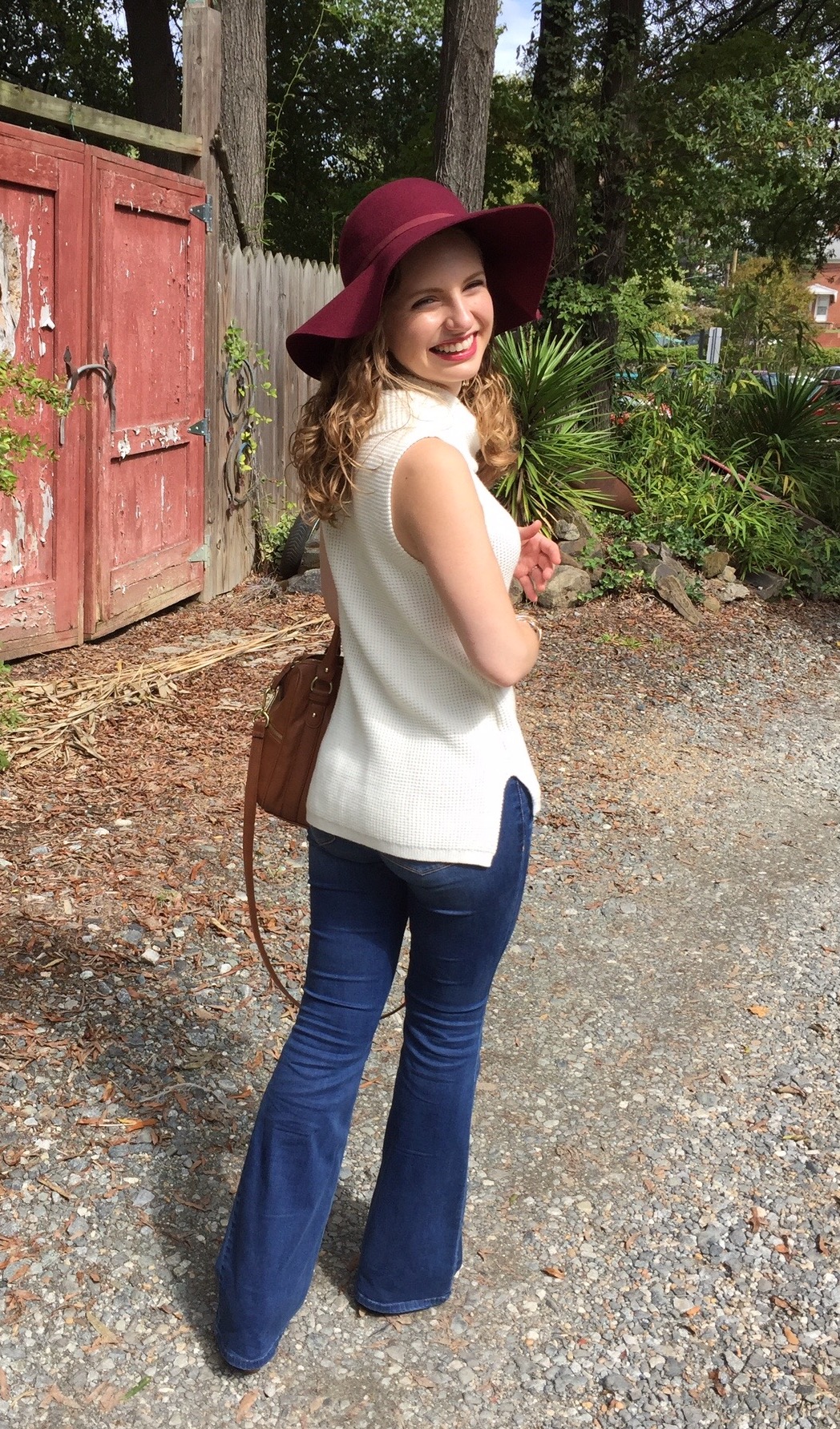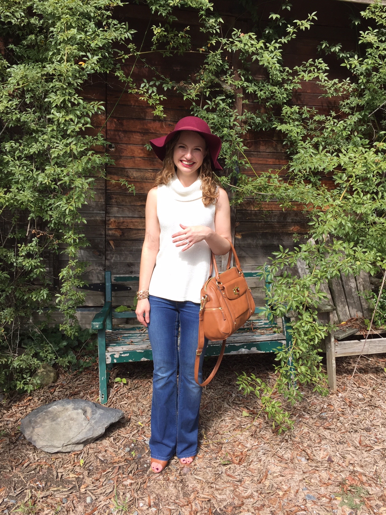 The 70s are back this fall, my friends! I didn’t see this one coming, but I love it! I bought my first pair of true flare jeans, and I even got into fall’s hottest accessory–a floppy felt hat (which J said was cute!) Who knew the 70s were such a fun era to dress?